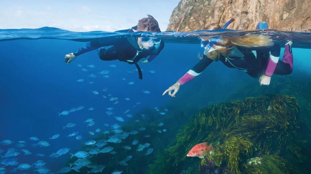 Snorkel gear, wetsuits, and underwater cameras can be hired from operators on the approach road, making this a genuinely accessible experience even for first-time snorkellers. If you’d prefer to stay completely dry, the Goat Island Glass Bottom Boat operates tours over the reserve, and the Goat Island Marine Discovery Centre nearby offers hands-on interactive exhibits about the reserve’s marine ecosystem, including live aquaria where you can hold a sea star or observe kōura up close.